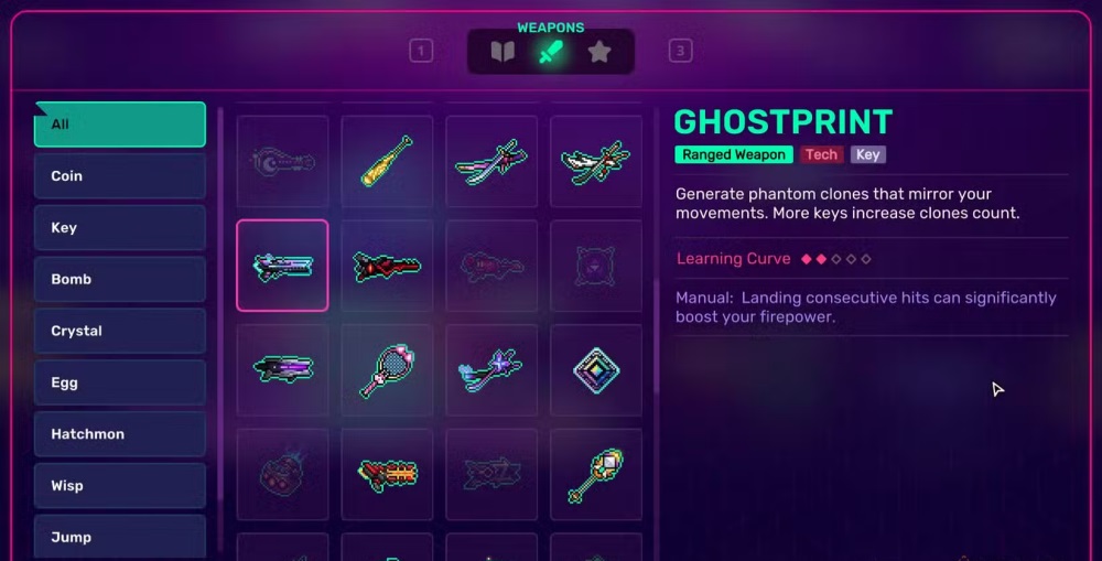 霓虹深渊2武器系统大升级,现在能拾取到的武器种类基本上可以分为三类,纯近战流、远近混合流、纯远程流。