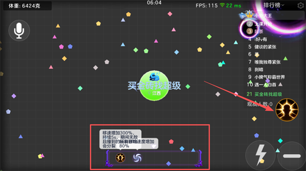 4、技能组合可触发超强增益,例如横冲直撞能提供移速300%加成、5秒无敌,撞击敌人可使其分裂80%,实现极速闪合、无敌撞击。