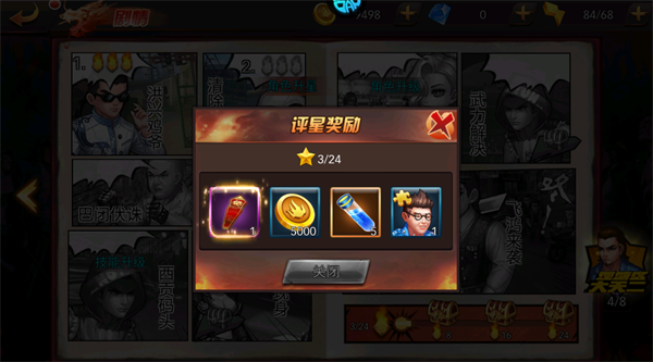 刷副本拿满星评价,领取角色碎片、经验药水和金币,用于角色升星与养成,大幅提升战力。