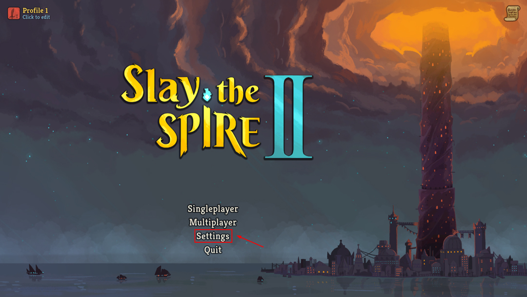 1、打开杀戮尖塔2电脑版,进入游戏后点击settings;