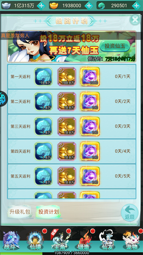 ★创角即送328元红包、仙玉*188888、元宝*1880000、银两*1亿!