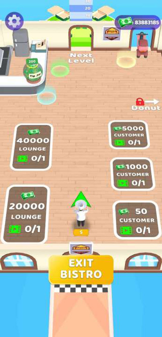 4、点击bistro,可以在餐厅中解锁餐桌,达到一定后,可以解锁新的区域
