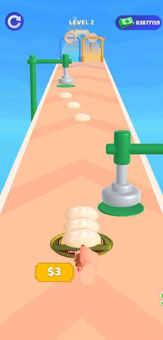 这款游戏叫《我想要披萨》,听起来就挺有意思的。玩法是跑酷加上做披萨,你得扮演一个厨师,在跑道上制作披萨,加各种馅料,然后卖给顾客。听起来有点挑战性,因为你得避开陷阱,控制好披萨的数量才能过关。