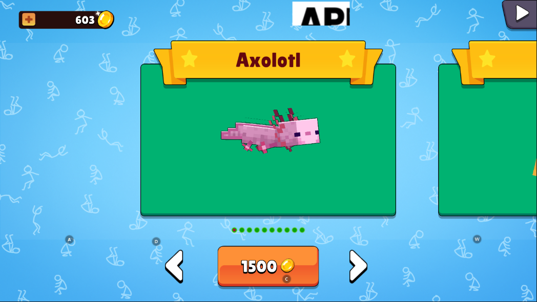 4、点击左下方的-skin皮肤,等你赚取足够的金币就可以买下你喜欢的皮肤啦
