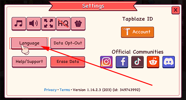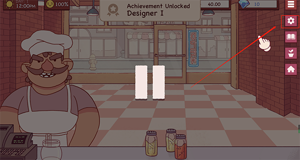 3、初次进入游戏默认显示语言为英文,我们暂停游戏,点击打开设置,如下图所示