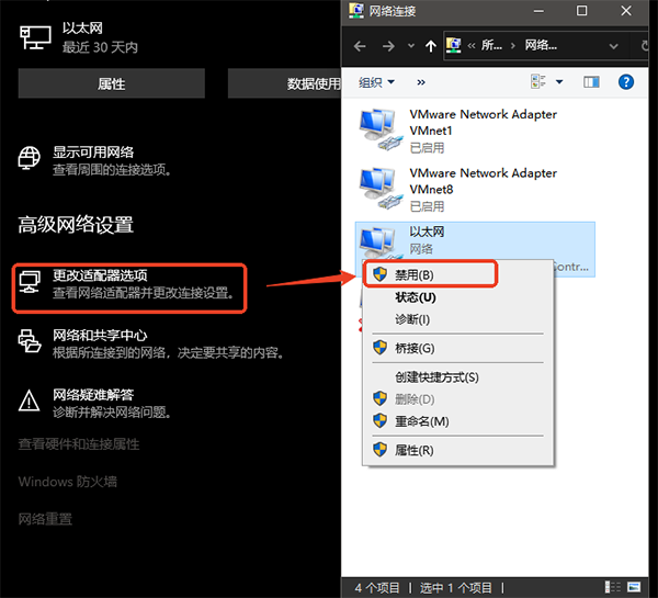 通过这种方法可以关闭本地网络,进入游戏后小编会再启用适配器恢复本地网络。(关闭网络的方法还有很多种,不熟悉操作的玩家可自行检索方法)