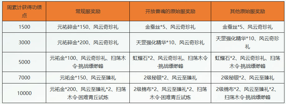 此外,每周累计获得功绩点达指定数量可获得丰厚奖励。