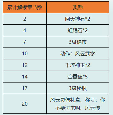 活动介绍:活动期间,等级达到35级且活跃值达300点的玩家可点击江湖起风云按钮,参与风云传活动,获得丰厚奖励。玩家每日仅可解锁1章风云传,会根据自身等级获得大量经验奖励。