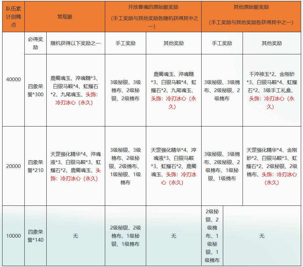 队伍积分奖励:单场结束后,根据队伍累计剑魄点,可领取对应奖励。