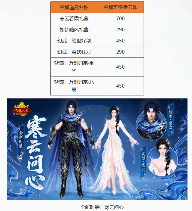“凌云珠”可用于换取珍宝。“探宝符”可用于“探宝”或“探宝十连”,探宝后有概率获得寒云若霞礼盒、如梦随风礼盒、幻武:绝世好剑、幻武:雪饮狂刀、背饰:万剑归宗·重华、背饰:万箭归宗·北辰等丰厚奖励。累计探宝达到一定次数,还可领取额外奖励。