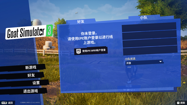1、打开模拟山羊3游戏,进入游戏后,点击+号使用EPIC账号登录游戏;