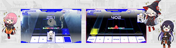 音游部分将在基础4轨道与最多7轨之间变换,并设有“简单”“普通”“困难”“专家”四档难度,从新手到老手皆可尽情体验游戏的乐趣。