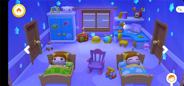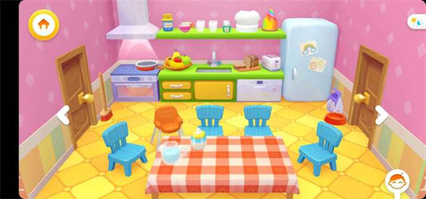 游戏提供了7个不同的场景房间,每个房间都有独特的玩法,比如客厅、厨房、儿童房等等,玩家可以在这些地方自由发挥,没有固定的规则,完全可以随心所欲地探索和互动。这种开放式的玩法让人感觉很轻松,不会有压力。