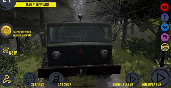 另外,为了还原真实的物理效果,在行使的过程中车辆可能还会陷进泥泞 的道路,并且您可以选择锁定差速器,打开全轮驱动和低速档,降低车轮以改善接触点,这将非常考验驾驶员的技术,玩起来还是非常的真实。
