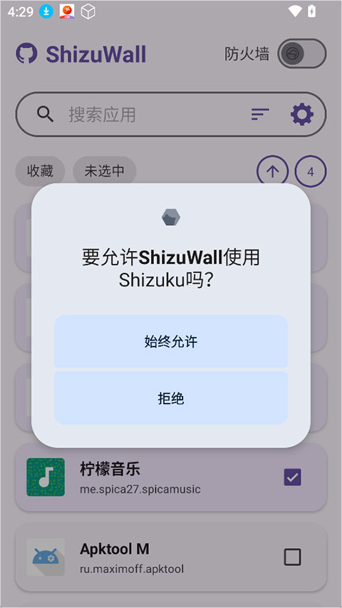 2、然后通过Shizuku授权ShizuWall高级权限