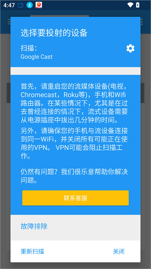 确保你的手机和电视/盒子连接在同一个 Wi-Fi 下。这是设备发现彼此的基础,如果是不同频段(2.4G/5G)建议也尽量统一。