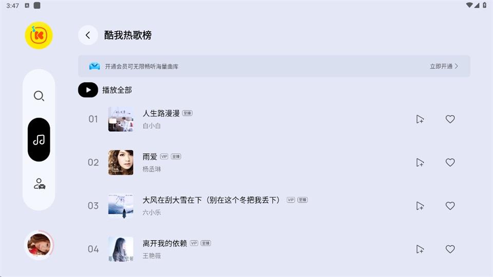 正版曲库,热门金曲与新锐单曲一网打尽