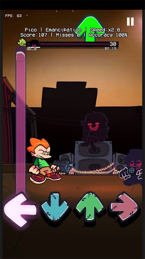 神奇马戏团(Digital Circus) 是一款以"FNF"为基础打造的节奏对战音游,主打"跟拍对抗"的核心体验,玩家需要根据音乐节奏点击上下左右箭头,通过更高的命中精准度来压制对手血量、完成说唱对决。游戏在经典点按+长按机制上强化了判定严格度和节奏强度,连击(COMBO)和血条机制让每一局都有明显的对抗感,操作反馈直接,但也意味着对手速和节奏感要求更高。