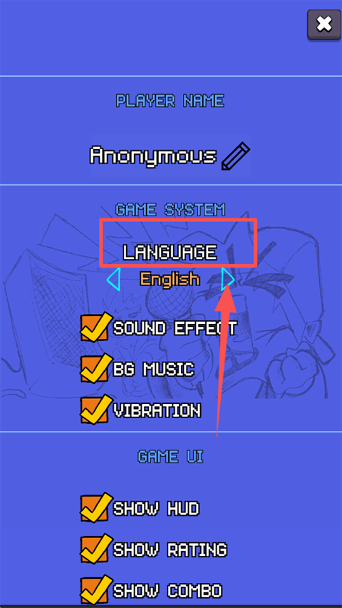 2、在"LANGUAGU"中点击下方的三角图标进行切换语言;