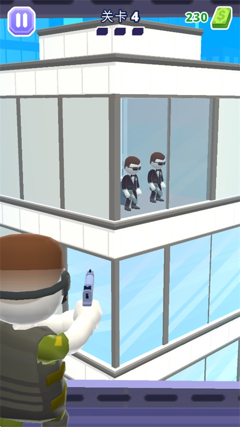 游戏内提供了大量的关卡,每过一关都能获得现金奖励,现金可以用来购买更加高级的枪支