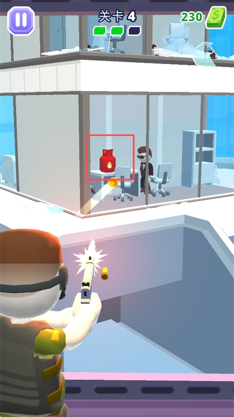 游戏内还有汽油桶道具,发射子弹就能引爆它,爆炸的威力不容小觑