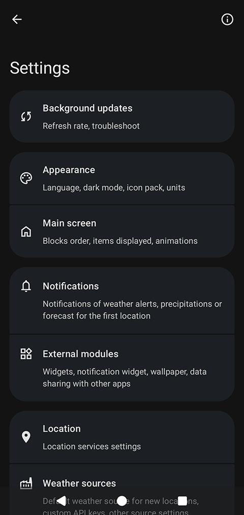 在设置页,可分别为不同天气模块选择数据来源: