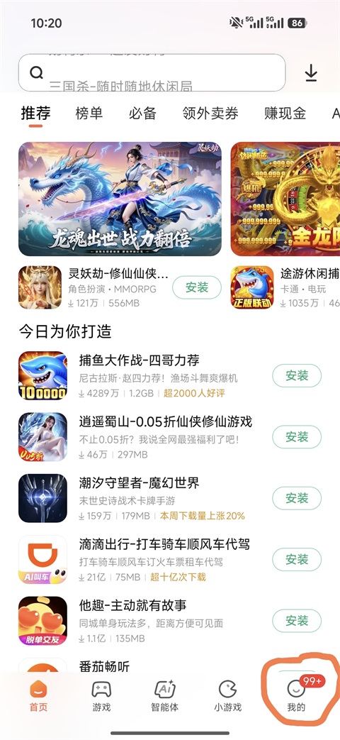 进入应用商店界面以后,我们点击底部导航按钮【我的】。
