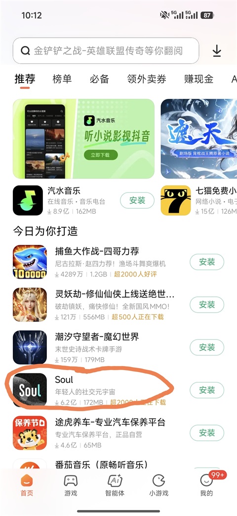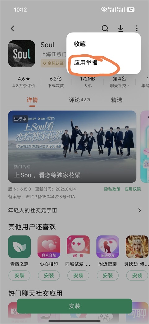 1、打开小米应用商店App,在搜索栏,找到你想举报的应用,以Soul为例,如下图所示;