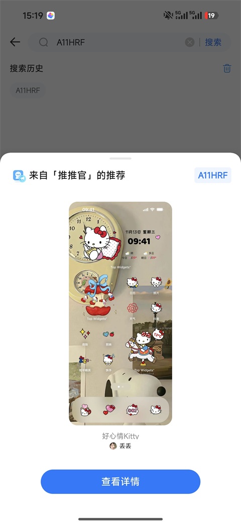 3、在搜索框中输入创作者码:A11HRF,进行搜索,随后查看详情;