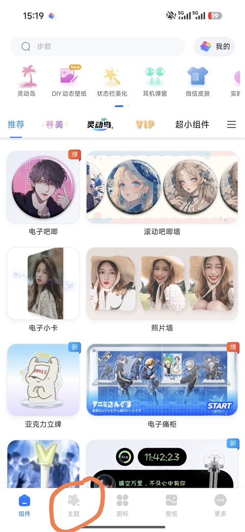 万能小组件App内包含多种实用组件,如时钟、天气、照片、倒计时、步数等,同时支持透明组件与自定义布局,方便用户打造专属桌面风格。图标模块提供多种主题风格(如简约、ins风、拟物等),并支持自定义图标替换。