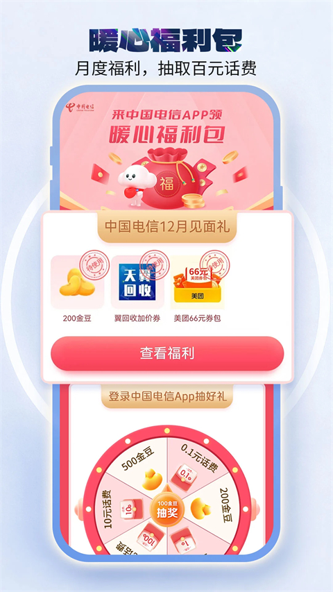· 暖心福利包:抽限量话费、海量福利月月领不停。