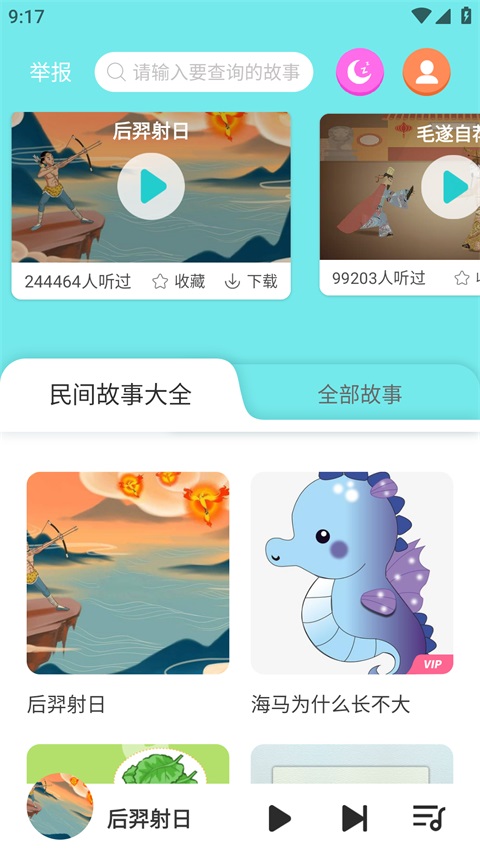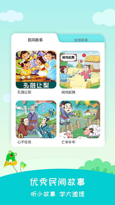民间故事大全App是一款专为儿童打造的睡前故事与民间文化听书软件,提供海量优质故事资源,涵盖经典童话、寓言故事、历史故事、名人故事以及睡前故事等多种类型,满足不同年龄段孩子的听读需求。应用内容包括《牛郎织女》《白蛇传》《孟姜女哭长城》《梁山伯与祝英台》等经典民间故事,同时还收录唐诗三百首与胎教音乐内容,帮助孩子在故事中学习传统文化知识。