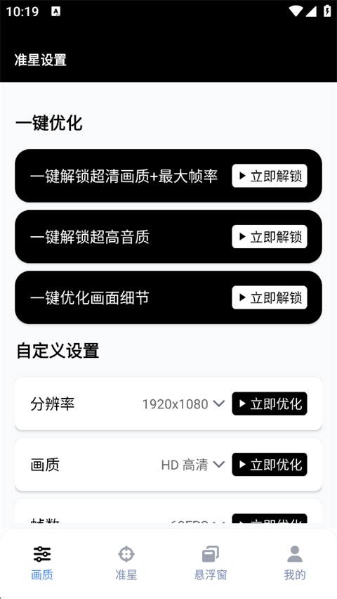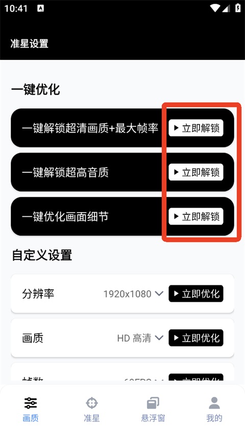 1、点击右侧的【立即解锁】按钮,可一键优化画质、帧率、音质以及画面细节。