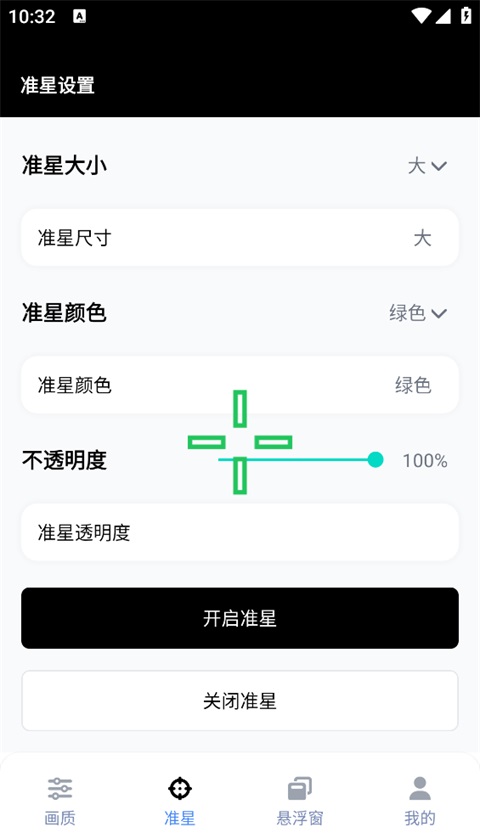 6、往下滑,你可以调整准星的大小、颜色和透明度等参数。设置完成后,打开游戏即可使用准星。