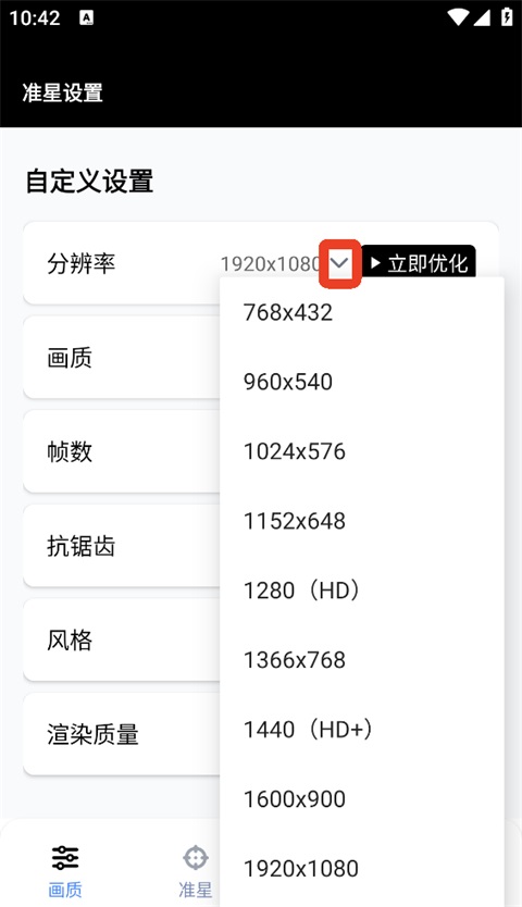 2、你还可以自定义调整画面的分辨率、画质、帧率、抗锯齿等多个参数。