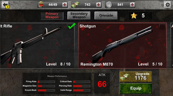 丧尸生存亡灵(The Zombie Gundead)是一款采用斜45%视角的3D射击游戏,背景设定在充满僵尸的城市,玩家扮演一名幸存者使用武器一路射击僵尸,以最快速度赶到目的地。游戏中提供主武器、辅助武器、手榴弹可搭配,拥有丰富的武器类型,包含Remington M870散弹枪、AR-15步枪等,玩家可以通过升级生命值、护甲、子弹弹夹来增加更对抗能力,更好的通关极限关卡。