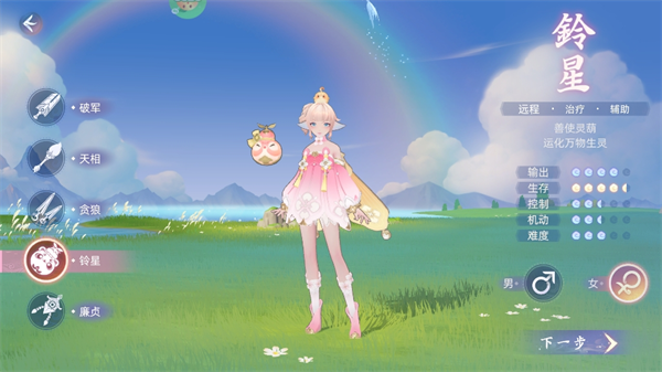 铃星,召唤灵葫,可以大幅度治疗队友及自身的生命值,有了铃星在,不管是下本还是pk,都能感受到满满的安全感。