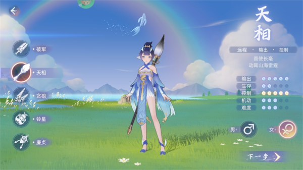 天相,冰火雷三元素伤害,远程法师职业,团队中的控制担当,施展各种负面BUFF,降低敌人各方面属性。特有技能还能够解除自身所有的负面状态,少量回复自身的生命值。