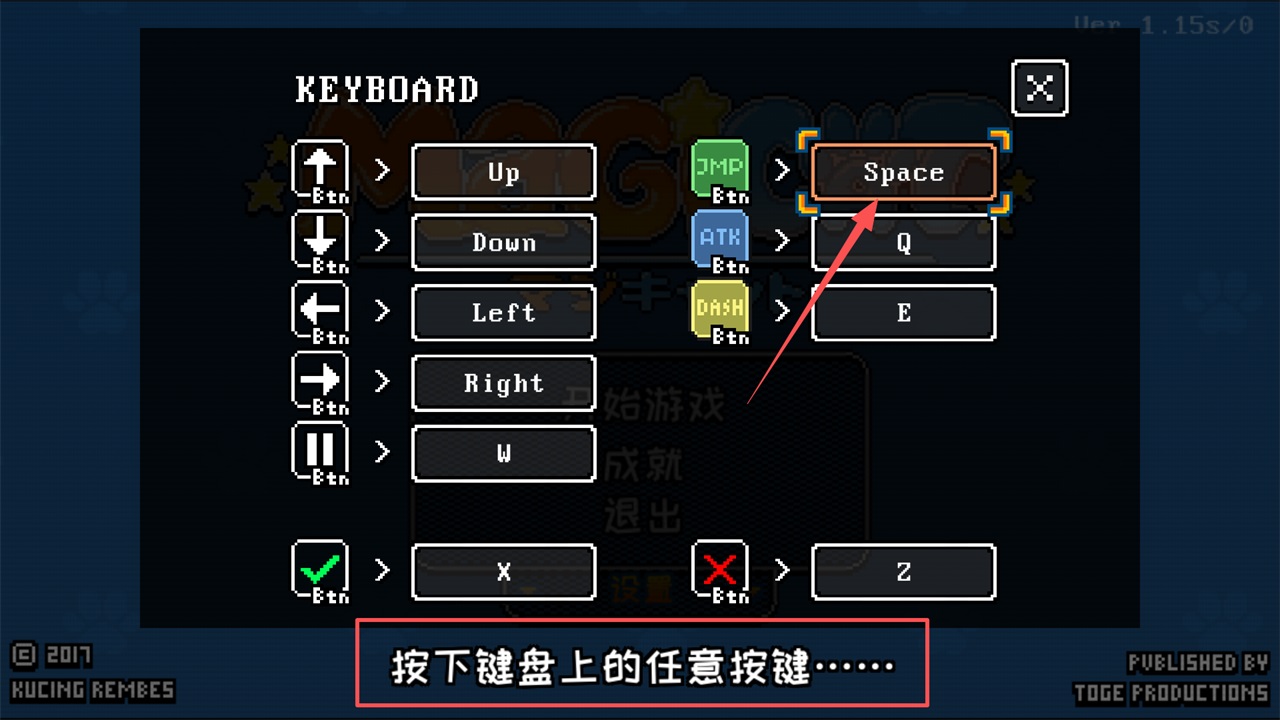 如"JMP"表示跳跃,原设定是"X"可切换成"space"(空格),这样就可以避免与确认键"X"重复。