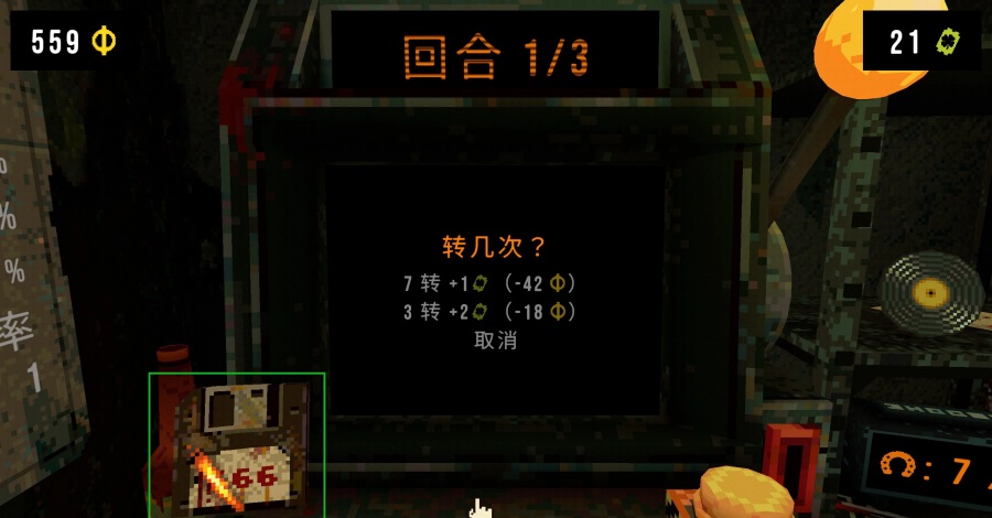 4、进入死线3时老虎机左下角会出现一个带有“666”数字的软盘,遇到“666”红电话后不选择能力,当进入下一轮死线时就会划掉软盘上的一个6,当三个6全部被划去,再次摇到“666”后,并在本回合结束后立马进入下一轮死线,电话就会化为白电话,同时老虎机上的“666”会变成“999”,最终奖励也会变成“白钥匙”(只要未拿取钥匙都会被转化,提前解锁不受影响);