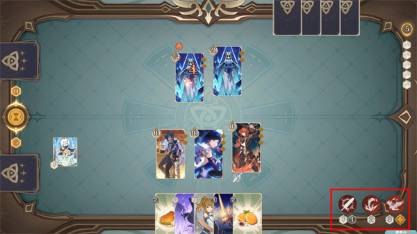 3、元素骰:在对局中,所有的行动都需要消耗「元素骰」每回合开始获得并投掷8个「元素骰」,并有1次机会选择任意数量进行「重投」。