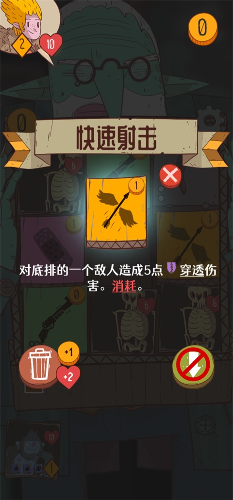 消除诅咒并抽取2金币或更少的卡片。