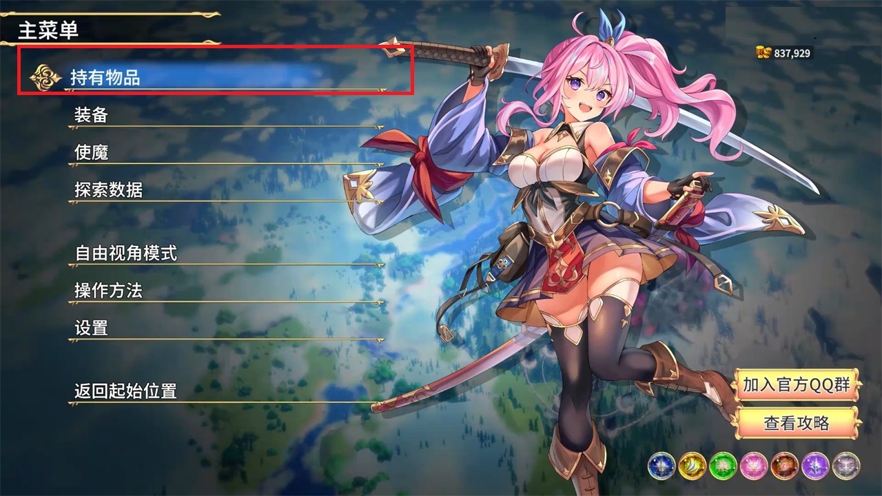 4、再次打开主菜单,点击"持有物品"打开玩家的物品栏;