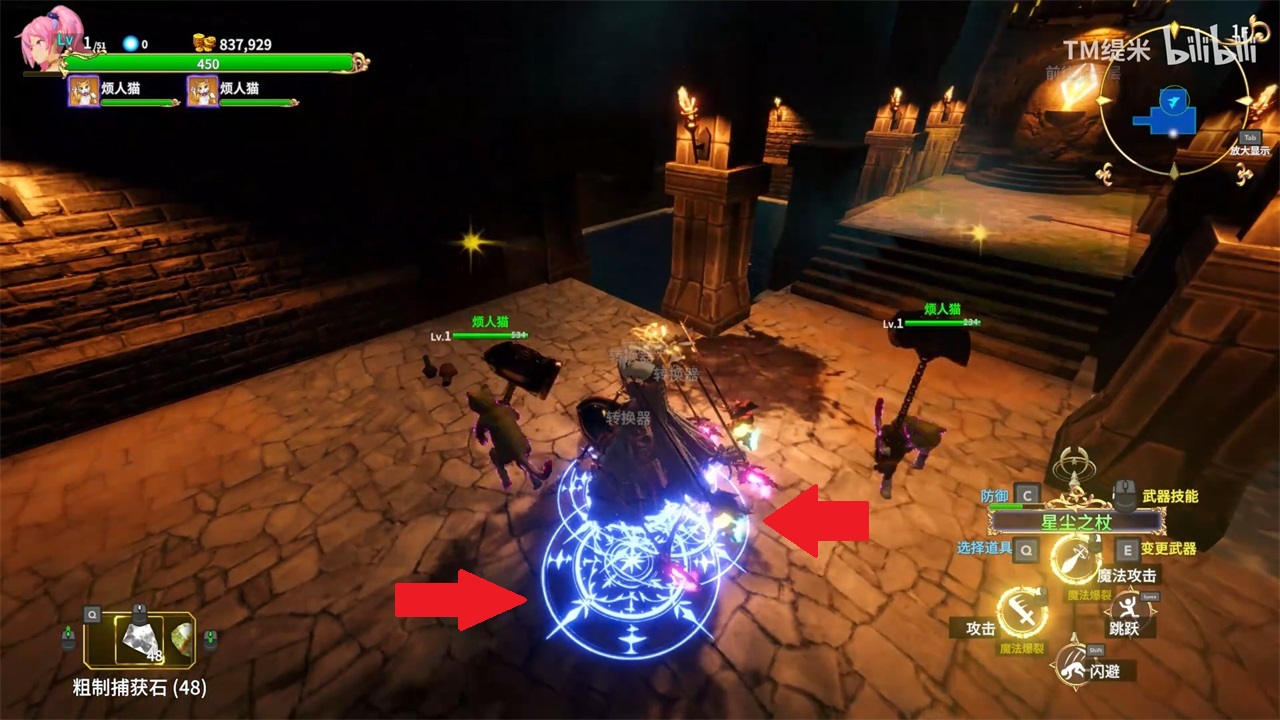 3、带上两只"烦人猫"就可以看到地面上出现了两个转换器的法阵;