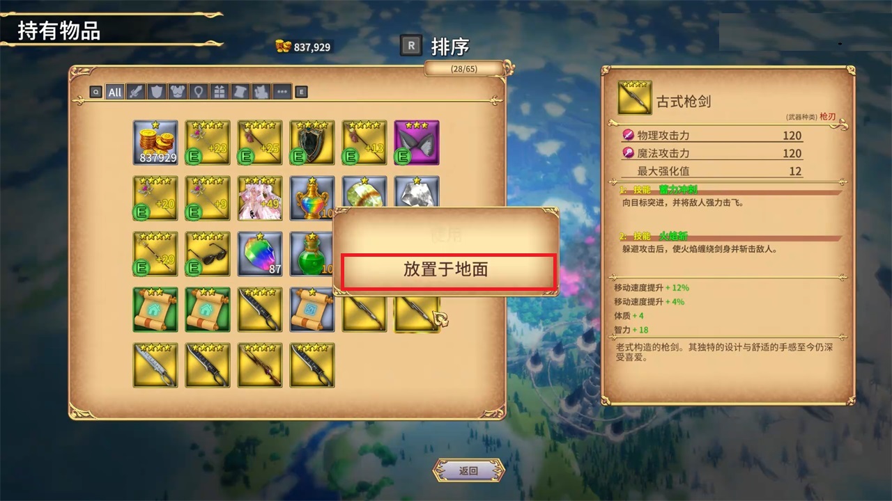 5、玩家选择要刷的装备类型,刀枪或者卷轴都是可以刷的,这里选择"古式枪剑"点击放置于地面;