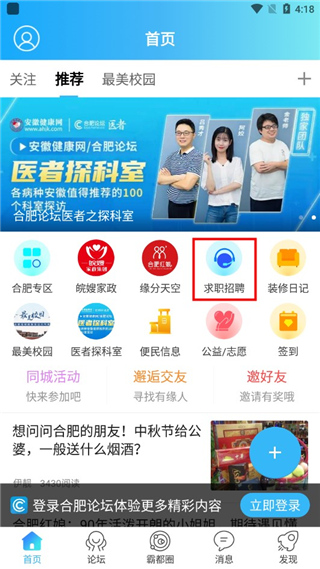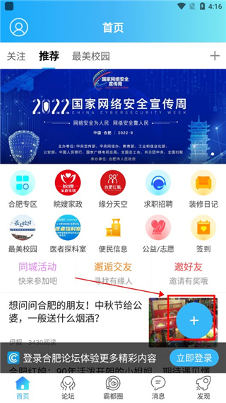 2、是合肥市民的网上精神家园,在这里可以免费注册、发帖回帖、参与活动、互动投票、留言交友等,还能随时随地尽览本地各种信息。
