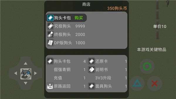 除了战斗玩法,游戏还有丰富的地图,玩家可以遇到不同种类的狗头形象,比如柴犬、沙雕狗头等。游戏特色包括简单便捷的操作、三种酷炫角色选择、丰富的道具系统、金币模式简化操作流程以及可爱的宠物系统。玩家可以通过购买狗头卡包获取狗头,探索地图,购买道具,进入战斗区选择模式进行PK对决。