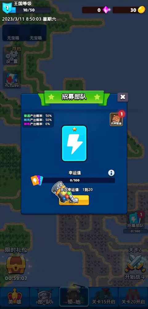 4、51级关卡解锁建立帝国:可以选神圣教廷来解锁鹰身女妖,解锁最低要求1000人口,一个关卡奖励10人口,人口其他获取途径还在开发中。