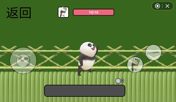 6、可以看到左下角可以控制主角国宝熊猫进行移动,顶部是当前角色的血量,右侧分别是跳跃和武器。