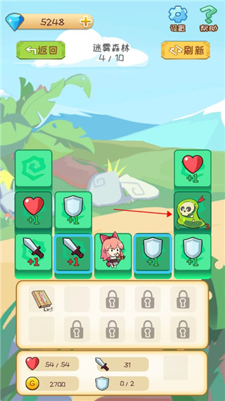 2、这可以用来走消耗流,用它配合游戏中的免费三次刷新地图来对敌人进行消耗,像比较难打的就是boss关卡如果我们之间存在很大差距就完全可以直接用三次机会配合技能耗死他。